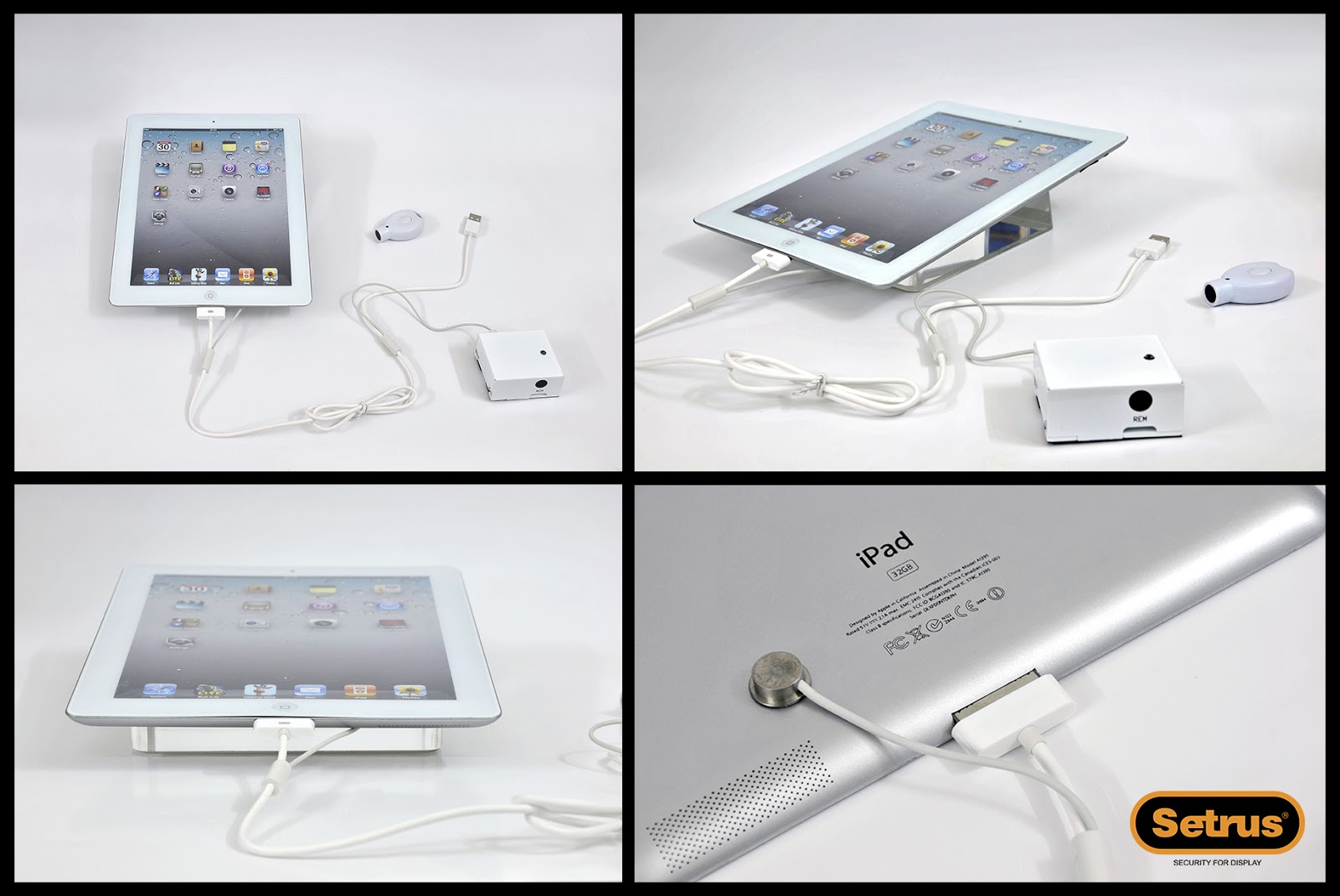 SETRUS - ra đời cung cấp các thiết bị chống trộm trưng bày máy tính bảng, Ipad, điện thoại các loại...dùng trưng bày và có chức năng báo động lớn, nhạy, liên tục bảo vệ an toàn sản phẩm không bị đánh cắp.