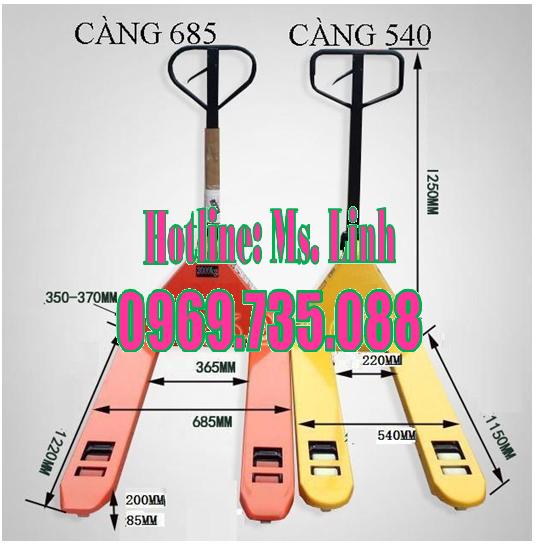 - Chiều dài càng: 1150mm